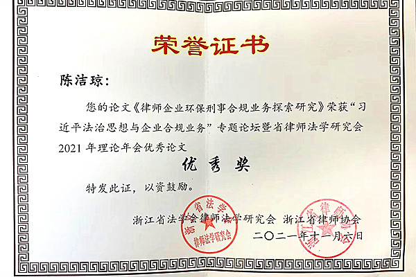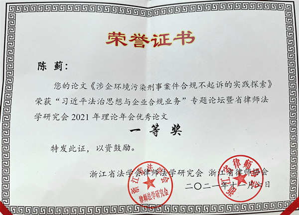 本次论坛,评选出一等奖论文三篇、二等奖论文六篇、三等奖论文十二篇,优秀奖论文十篇。我所陈蓟律师的《涉企环境污染刑事案件合规不起诉的实践探索》一文获一等奖,副主任陈洁琼律师的《律师企业环保刑事合规业务探索研究》一文获优秀奖。论坛共分为开幕式、主题分享、闭幕式三个部分。