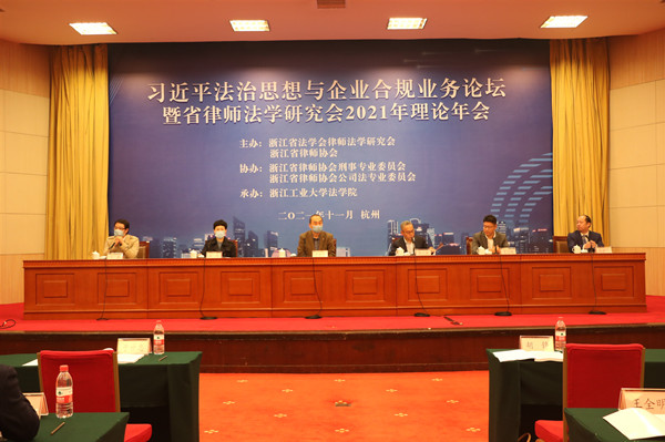 厚启讯:11月6日,由、省法学会律师法学研究会、浙江省律师协会联合主办的“习近平法治思想与企业合规业务”专题论坛暨省律师法学研究会2021年理论年会在杭州召开。本次论坛由浙江工业大学法学院承办。省法学会二级调研员胡铮,省律师法学研究会会长于世忠教授,省律协副会长、省律师法学研究会副会长唐国华,省律协专职副会长、省律师法学研究会副会长陈三联,省律协刑事专业委员会副主任、省律师法学研究会副会长高振华,浙江工业大学法学院副院长、省律师法学研究会常务理事吕鑫出席论坛。厚启所主任、省律师法学研究会秘书长邓楚开担任论坛总主持。